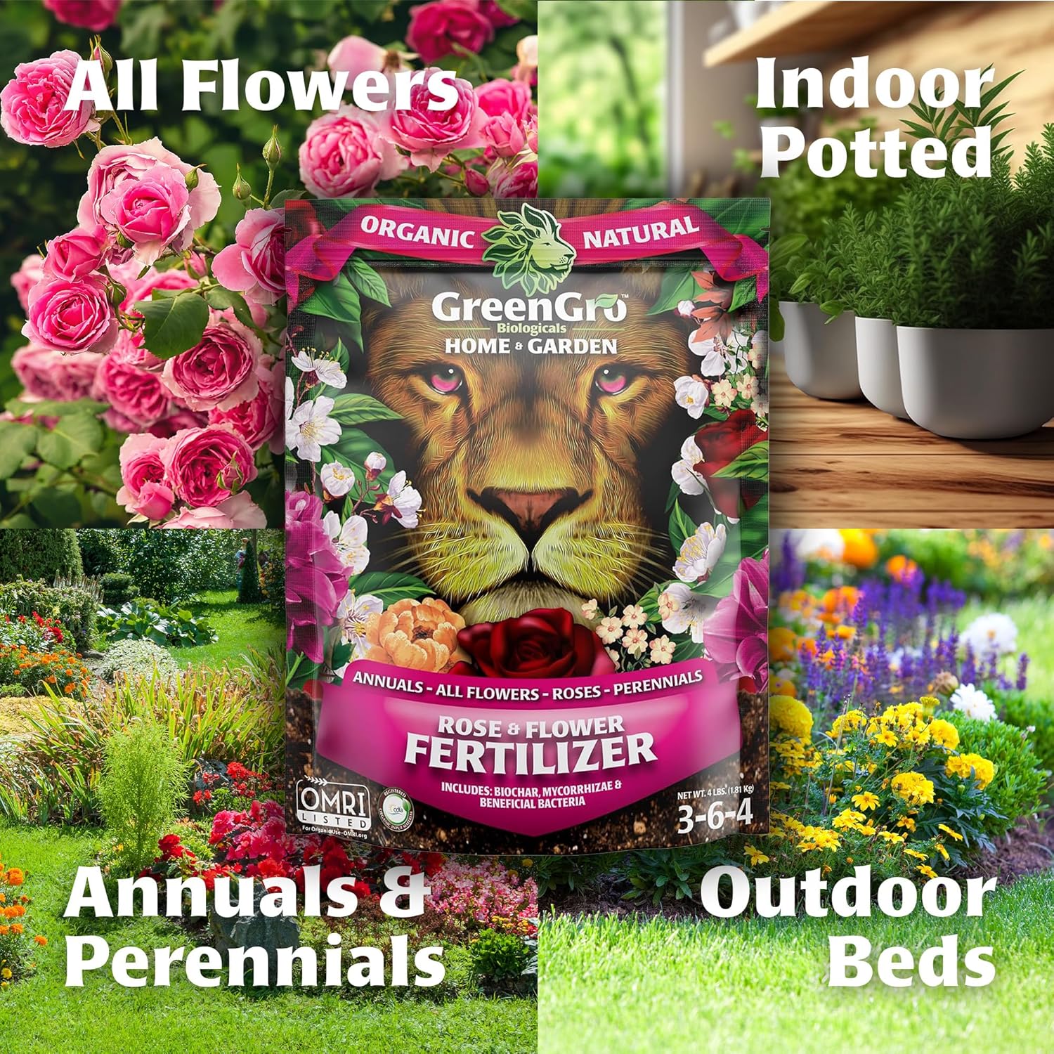 Looking for beautiful blooms? No matter what type of flowers you're growing, our Rose & Flower Fertilizer will give your soil and plants everything they need to produce bountiful flowers. Containing our signature biochar, mycorrhizae and beneficial bacteria blend, this flower fertilizer helps promote regnerative living soil, which allows it to support you in growing healthy plants with less work. Formulated specifically for flowering plants, this fertilizer can be used on annuals or perrenials, when planting or on established plants, and in containers.