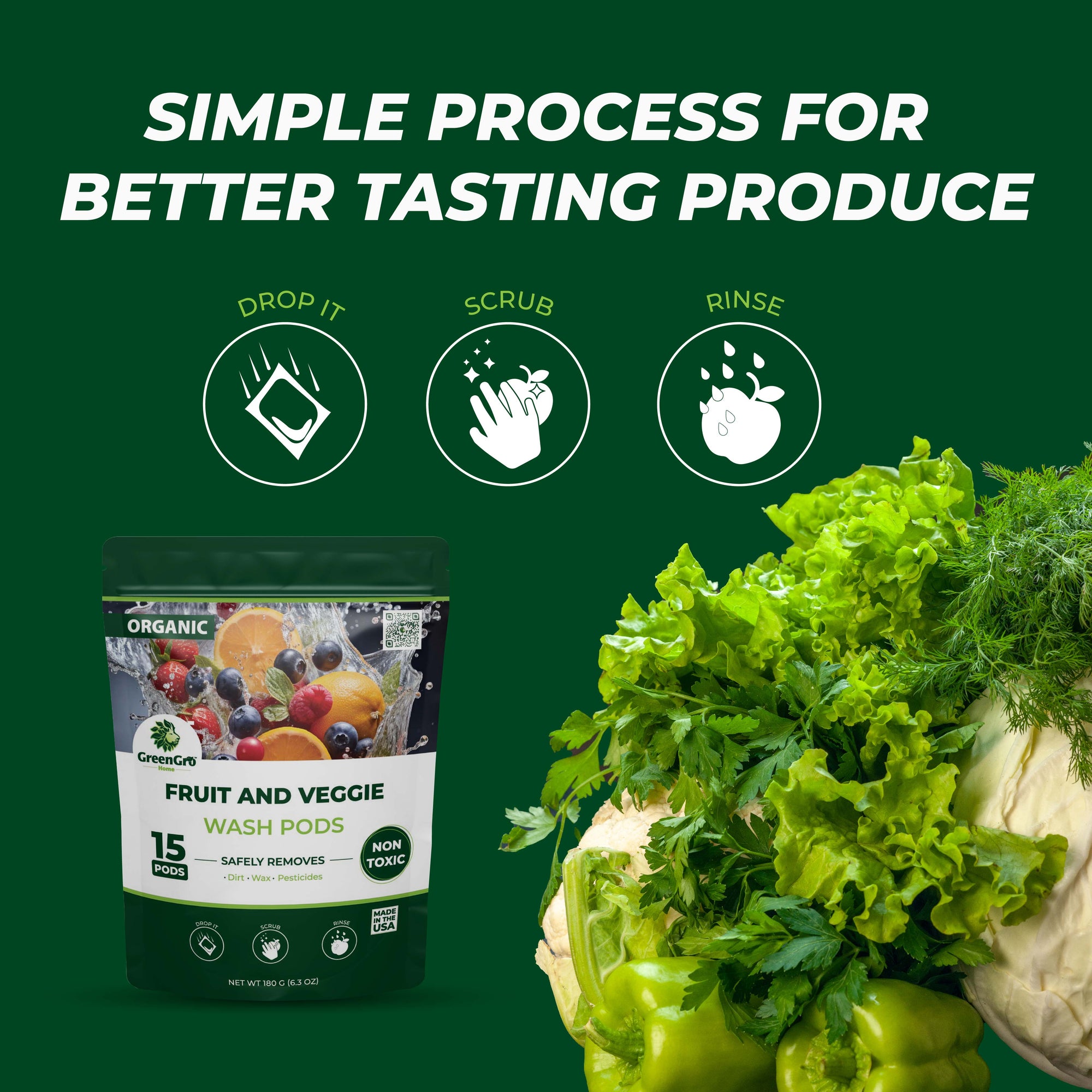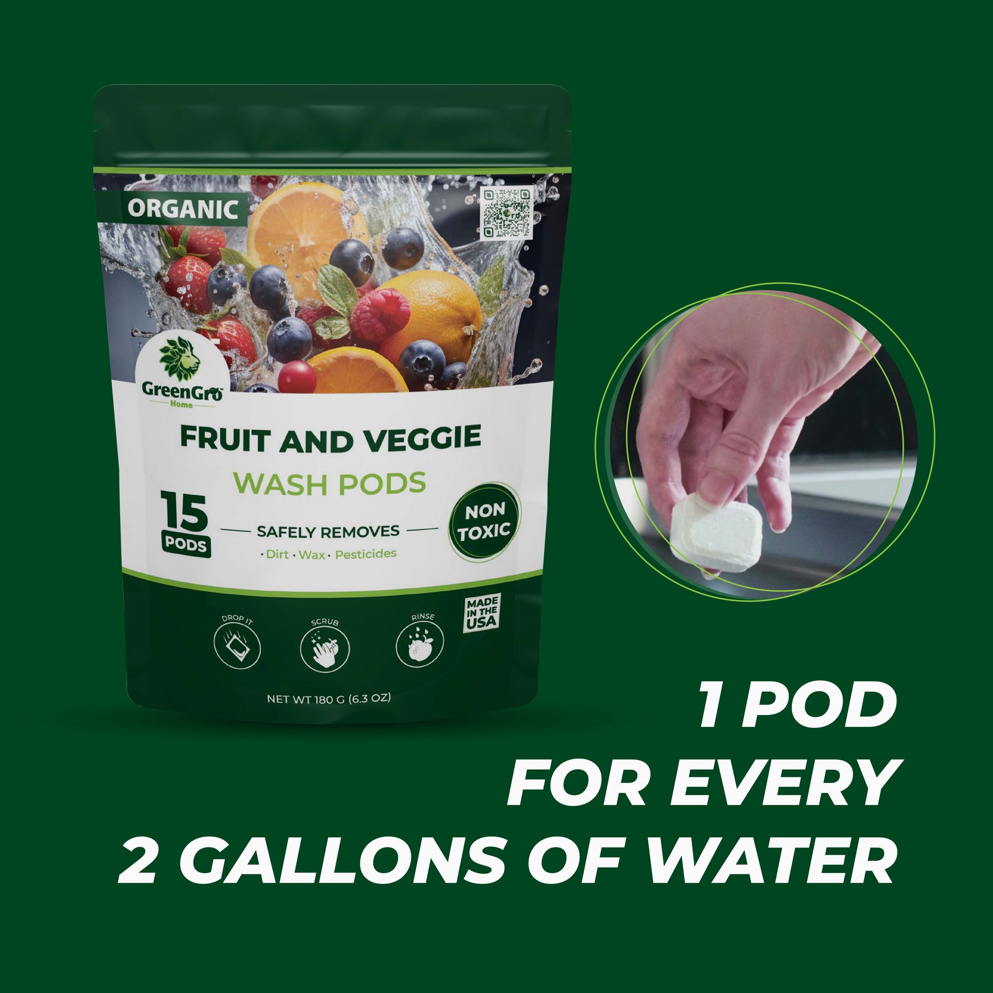 Elevate the cleanliness of your fruits and vegetables with GreenGro’s Fruits and Veggie Wash Pods, a plant-based formula that ensures your produce is safe and pristine. Our